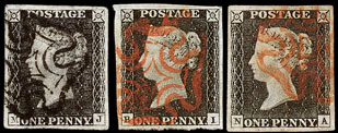 The Great Britain section includes a large number of classics many of which are illustrated in the catalogue. There are photos of 25 Penny Blacks in the printed catalogue, including single items & lots with 13, 19 & 22 examples.