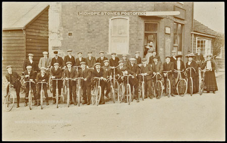 Also in the West Riding of Yorkshire, Midhopestones Post Office with a 1907 Whitsuntide gathering of a cycling club appealed to collectors of post offices as well as to collectors of cycling, with the result that the card more than doubled the estimate, with a result of £52.