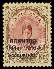 The British occupied the Iranian port of Bushire in 1915 and overprinted stamps were released for local use. The auction included a mint set of the August issues which sold for £885.