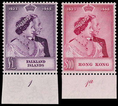Better quality Omnibus collections have been in demand recently so a 1948 RSW UM set, each high value with marg plate number, was bound to be popular. The collection eventually sold for £1,240.