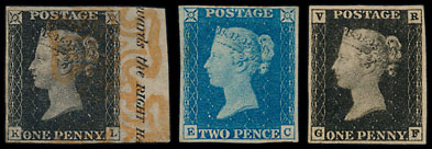 An 1840 1d black plate 11 with marginal inscription, thought possibly unique as such, sold for £4,480 & a 2d pale blue plate 1 sold for £5,900. A 1d black VR official with Holcombe certificate sold for over 4 times the estimate at £10,620.