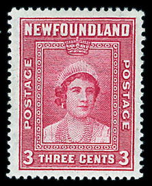 Lot 303, the rare and seldom noticed Newfoundland 1938 line perf 3c fetched £247 (cat £850)