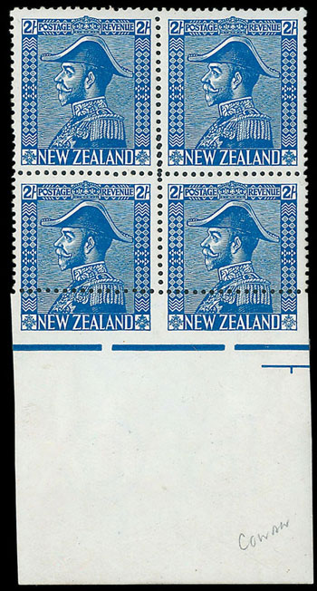 Lot 309, a spectacular miss-perf block of 2/- Admirals, estimate £200 sold for£342