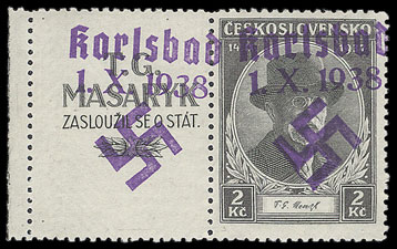 A very unusual and specialised collection of German occupation of Sudetenland overprints attracted keen bidding, eventually selling for £2,950 (estimate £1,500).