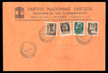 And finally, a very scarce Italian Naval Base in Bordeaux cover (see our previous article in the news section) surfaced to much bidding, with the estimate of £500 being left in the wake of a realisation of £1,652.