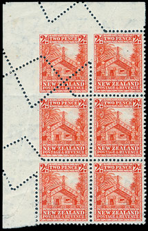New Zealand 1936-42 UM corner block of 6 with spectacular mis-perf £330