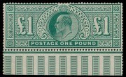 In the Commonwealth section of the auction some rare Rhodesia items achieved excellent prices. A 1898-1908 British South Africa Co. £5 in strip of 3 sold for £1,020 and a spectacular 1905 Victoria Falls 5/- in a block of 15 achieved £1,050, this being the largest known multiple of this issue (ex Howie). A 1910-13 ½d bluish-green imperforate block of 4 failed to find a buyer. This block (ex Appollonia) is very rare, the catalogue price for an imperf pair is £15,000.