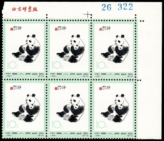 China continued to be popular, a 1973 Panda set in corner blocks of 6 sold for £480.