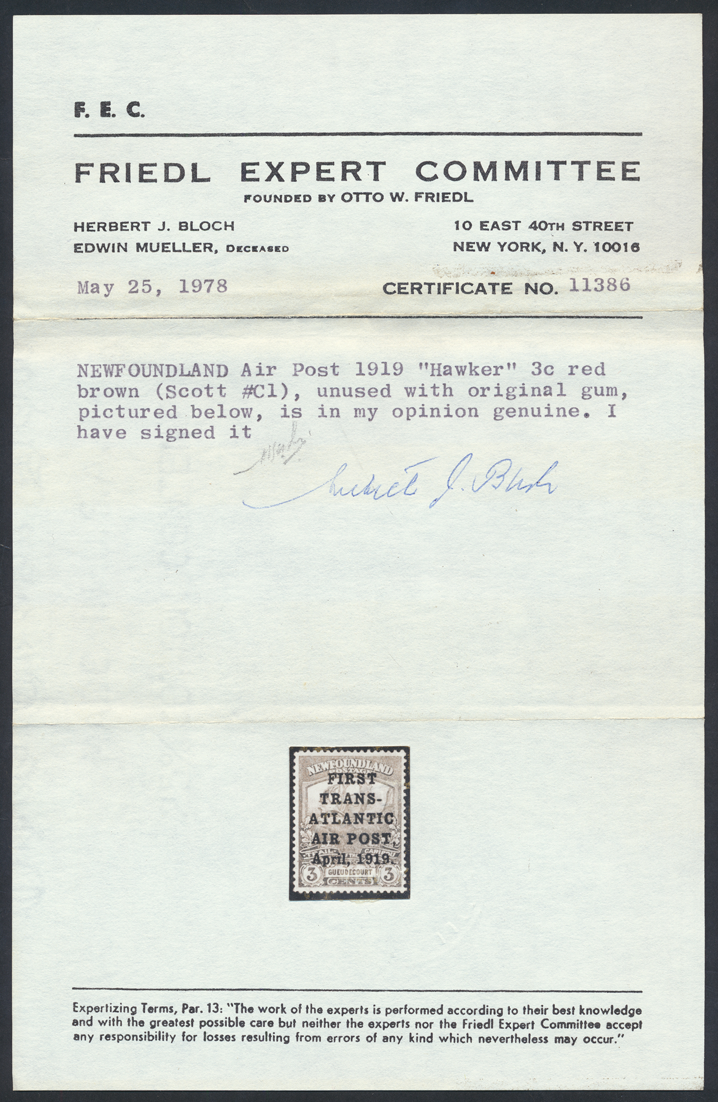 This example is to be offered as lot 82a in our January philatelic auction with an estimate of £10,000 and is accompanied by a 1978 Friedl Expert Committee certificate signed by Herbert J. Bloch, who has also signed the reverse of the stamp.