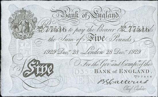 This lovely Catterns 1929 (28 Dec) £5 graded as nearly extremely fine sold for £252.
