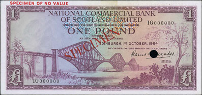 This National Commercial Bank of Scotland 1964 £1 specimen realised £271.