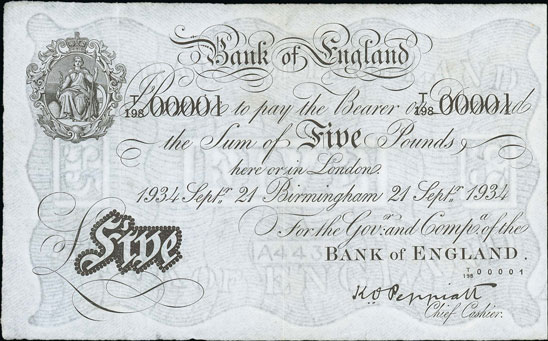 This Peppiatt 1934 £5 Birmingham Branch, graded as very fine, sold for £944, almost double its estimate.