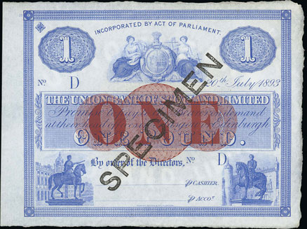 And this Union Bank of Scotland 1893 £1 specimen achieved £224.