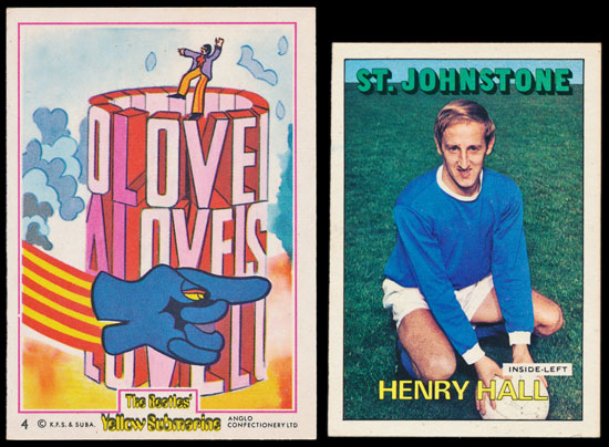 There was an excellent trade card selection of lots in the sale. A small selection of mixed lots did well, but the best results were seen in the individual sets. A 1923 W580 set of 30 Boxing cards realised £306 despite some faults, an Anglo Confectionery The Beatles Yellow Submarine set estimated £200 made £436 and The New James Bond 007 set estimated £280 realised £425. There was a large range of A. & B.C. Gum cards featuring many Footballer sets, the best including a 1963 Footballers Make-A-Photo set estimated £100 realising £141, a Civil War News set estimated £100 made £236, a pair of 1970 World Cup Footballers embossed and non-embossed sets estimated £180 realised £236, a 1971 Footballers Did You Know 220-290 set estimated £180 made £236 and a 1972 Footballers Orange/Red Scottish 90-179 set realised nearly £550. Other good results included a Somportex Film Scene Series James Bond 007 set estimated at £120 making £212, a Sun Football collection estimated £80 realised over £150 and a Sweetacre Favourite Dogs set estimated £40 realised £82 despite several with toning.