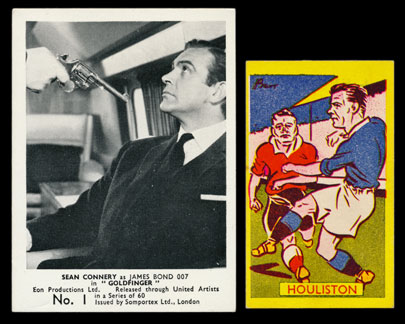 The trade card section of the sale offered some desirable sets. A Brooke Bond South Africa Our Pets set estimated £70 made £100, a Donaldson Sports Favourites Golden Series (Footballers) part set of 51 cards realised an outstanding £1,060, a Donaldson Sports Favourites part set of 209 cards estimated £420 achieved over £500 despite several having faults, a Somportex Film Scene Series James Bond 007 set estimated £180 realised £270 and a collection of Whitbread Inn Signs made over £280 against an estimate of £200 despite many having some toning.