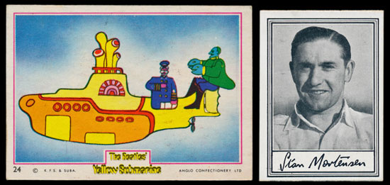 Multi set lots of Barratt, Liebig and Whitbread sets all achieved excellent results well above estimate. The individual sets in the trade section also continued to provide excellent results with an Anglo Confectionery The Beatles – Yellow Submarine set making £276, a Barratt Speed Series set estimated £50 realised £72, a Barratt Famous Footballers A.1 set estimated £100 made £120, a Barratt Giants In Sport set realised £114, a Chix T.V. and Radio Stars set estimated at £100 realised £144, a Lyon’s Maid International Footballers set estimated £60 made £90 and a Maynard’s set featuring 16 of 17 known cards achieved £180 despite 3 having creases.