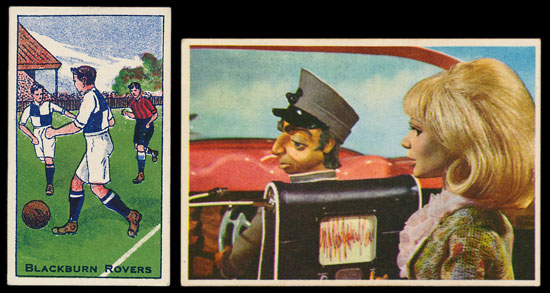 An outstanding selection of A. & B.C. Gum cards started with a mixed lot in 2 albums featuring several football sets estimated at £400 realising £870. Another mixed lot in 3 albums featuring Monkees Hit Songs, Monster Tattoos, Olympic Posters, Superman In The Jungle and other made £990 and another selection of football sets including Football Club Crests, Giant Team Posters and Football Photo’s realised £870.