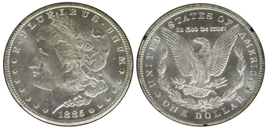 In the world coins section this USA 1885CC Morgan dollar graded as uncirculated sold for £401.