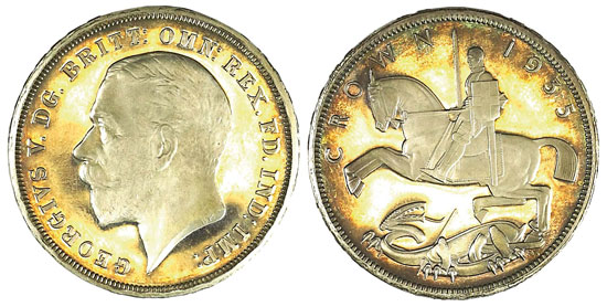 And this sought after 1935 boxed proof crown achieved £495.