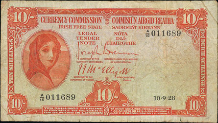 This Republic of Ireland 1928 10/- with A/15 serial number, graded as about fine, realised £283.