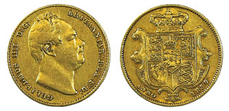 In the British gold coins section this 1837 sovereign, graded as fine/ good fine, realised £578.