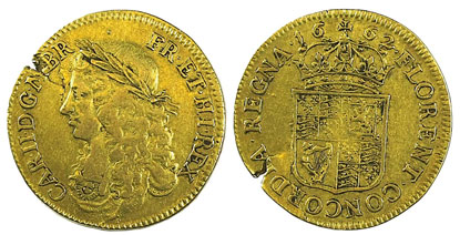 Highlights of the British coins section included this 1662 pattern broad, graded as fine, which achieved £1,239.