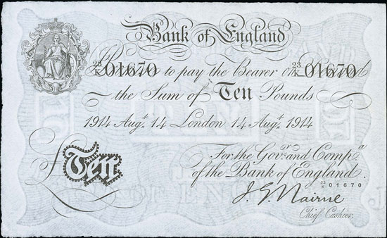 This unusual Nairne 1914 £10, graded as nearly extremely fine, realised £1,475.