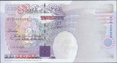 And this more modern Kentfield 1991 £20 with missing portrait of the Queen achieved £129.