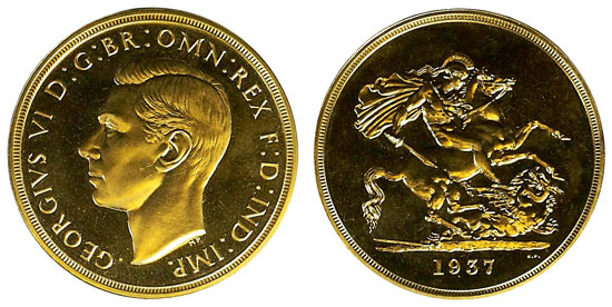 And this unusual 1937 £5, £2, sovereign and half sovereign proof cased set of 4, which sold for a whopping £12,390!