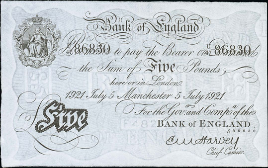 And this Harvey 1921 Manchester Branch £5 sold for £1,003.