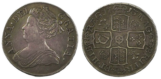 Moving on to the British coins section of the sale, this 1713 crown, graded as good extremely fine, achieved £855.