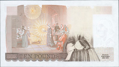 There were a range of error notes offered in this auction. Examples included this Page 1975 £10 with missing top half of Nightingale which realised £129.