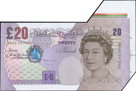 And this unusual Lowther 1999 £20 error note with extra paper and colour bars achieved £372.