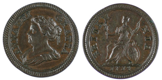 In the milled section this 1714 pattern farthing sold for £960.