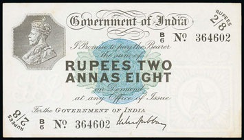 The highlight of the section however were the two Indian 1917 2 rupees 8 annas. The notes were consecutively numbered and were both graded as extremely fine. They sold for a whopping combined total of £10,148!