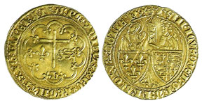 Moving on to the British coins section of the sale, this lovely Henry VI France/ Anglo Gallic issue salut d\'or realised £767.