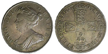 Milled coinage was also popular with this Queen Anne 1703 half crown realising well above estimate at £342.