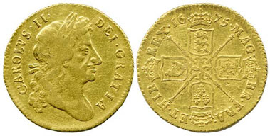 Guineas and fractional guineas were popular with buyers this auction with this Charles II 1675 guinea achieving £796.