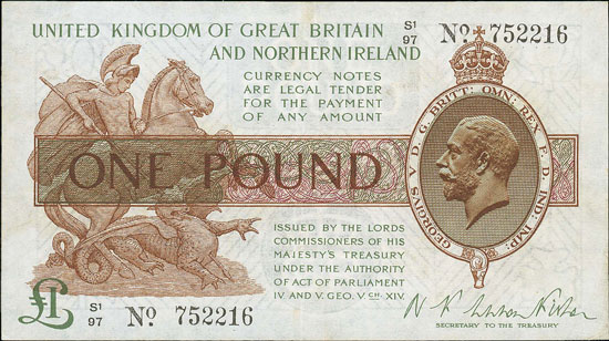 Other Bank of England cashiers were also on offer with this Warren-Fisher 1927 £1 with square dot selling for £165.