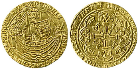 This highly unusual Richard II noble from the Calais mint and depicting the King standing in ship with sword and shield sold for a whopping £6,195!