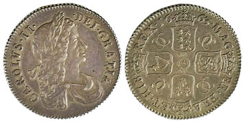 There were also plenty of milled British coins to choose from. Highlights of which include this 1663 shilling graded as about extremely fine which sold for £750.