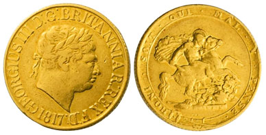 Moving on to the British gold section highlights include this 1817 sovereign which sold for £1,032.
