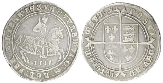 This Edward VI fine silver issue 1551 crown sold for £1,416.
