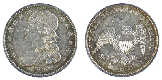 And this USA 1834 quarter, graded as good extremely fine achieved £444.