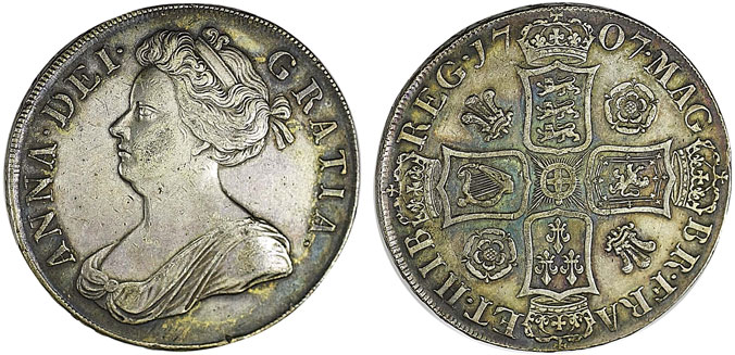 This 1707 crown, graded as good very fine, sold for £750.