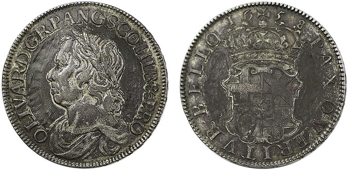 In the milled British coins section this Cromwell 1658 crown, graded as good fine/ nearly very fine, realised £1,560, despite having been tooled and artificially toned.