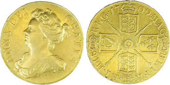 The undisputed star lot of the auction however was this Queen Anne Five Guineas, graded as very fine, which achieved a whopping £11,505!