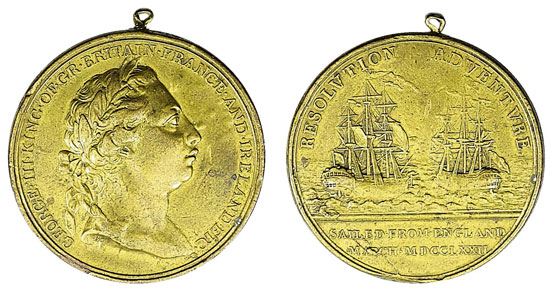 In the medallic and commemorative section this lovely 1772 Resolution and Adventure 42mm brass medal by John Westwood achieved a very impressive £2,100.