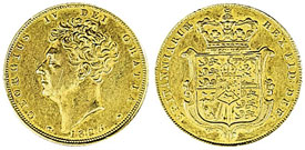 This 1825 bare head/ shield sovereign graded as extremely fine achieved £720.