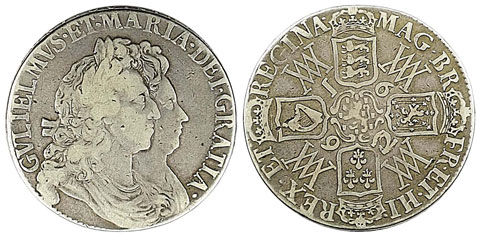 In the milled English coins section this 1692/ over inverted 2 crown sold for £750.